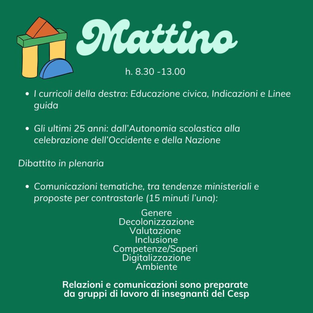 Il prossimo appuntamento di approfondimento che abbiamo organizzato è il convegno nazionale del 10 di ottobre a Bologna. Prima e dopo il convegno parteciperemo a tutte le iniziative che si indirizzeranno a contrastare i contenuti di queste Nuove Indicazioni, a partire da quelle organizzate insieme alla Rete bolognese per la scuola pubblica di cui facciamo parte.